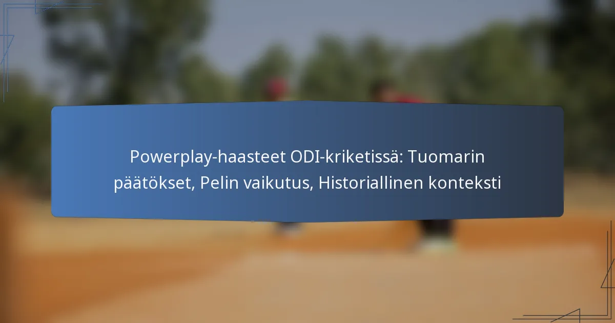 Powerplayt One Day International (ODI) kriketissä ovat kriittisiä vaiheita, jotka asettavat erityisiä kenttärajoituksia, muokaten sekä lyönti- että heittotiimien strategioita. Tuomarin päätökset näiden aikojen aikana voivat merkittävästi vaikuttaa pelin kulkuun ja lopputulokseen, erityisesti varhaisissa vuoroissa, jolloin aggressiivista peliä kannustetaan. Voimassa olevien powerplayien historiallinen konteksti paljastaa niiden kehityksen ja strategisen syvyyden, jonka ne tuovat ODI-otteluihin.